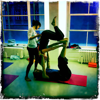 In the middle of cold February Prague hosted Vienna-based Boris Georguiev, a distinguished teacher of ashtanga vinyasa yoga and acroyoga . Boris is known for his gentle and soft approach to ashtanga yoga. He doesn't teach poses; his approach is based on principles leading to greater freedom and therapeutic effects on the body (surprisingly, we for example learnt how to walk). The acroyoga workshop was very successful, too, combining acrobatic and therapeutic aspects which together created a very exciting and relaxing whole. The mixture of participants was indeed inspirational, from professional acrobats and therapists and pure yogis!